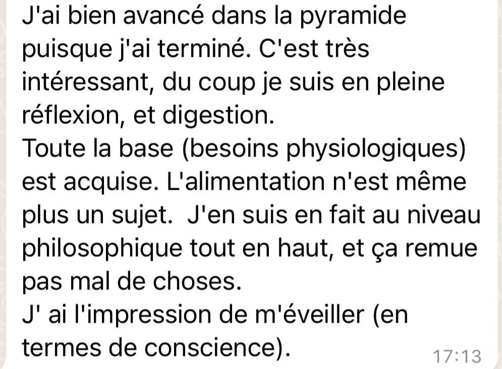 En résumé : la Pyramide est le cœur de ton processus. C’est là que tu retrouves toutes les clés, toutes les ressources et toute la structure pour vivre, intégrer et stabiliser la pacification alimentaire.